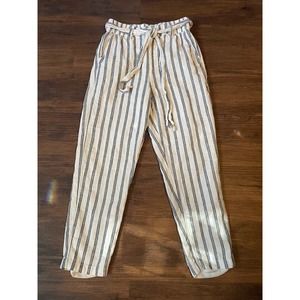 American Eagle Size XSmall Linen Blend Striped Pants White Blue