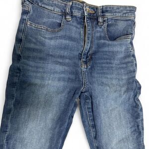 Classic and comfy American Eagle skinny jeans in a versatile blue wash. Designed with a mid-rise fit and stretch denim blend for a flattering, flexible silhouette. The "short" length makes them perfect for petite sizing.
