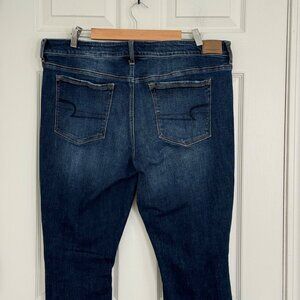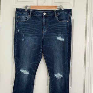 American Eagle Skinny Kick Jeans Womens 20 Long Blue Mid Rise Boho Distressed