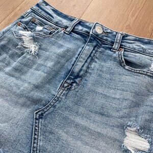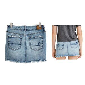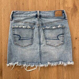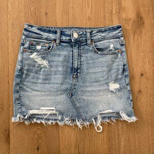 American Eagle Skirt Women 8 Denim Hi-Rise Mini Super Stretch Light Wash Distressed