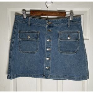 American Eagle Skirt Womens 12 (33) Super Stretch Hi Rise A Line Denim Button Up