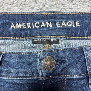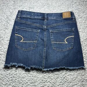 American Eagle Skirt - Hi Rise Mini - Denim - Next Level Stretch - Raw Hem - Frayed - Pockets - Night Out - Vacation - Travel - Party - Zip + Button Closure -