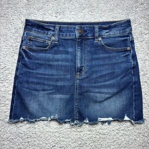 American Eagle Skirt Womens 8 Hi Rise Mini Denim Stretch Raw Hem Frayed Party