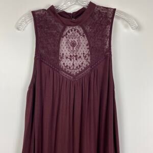 American Eagle Sleeveless Burgundy Mock Neck Mini Dress Lace Womens Size Medium