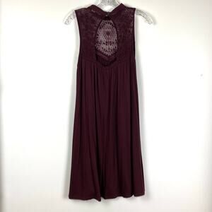 American Eagle Sleeveless Burgundy Mock Neck Mini Dress Lace Womens Size Medium