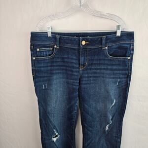 American Eagle Slim Boot Stretch Jeans Women's 16 Long*** Distressed Blue Dark
