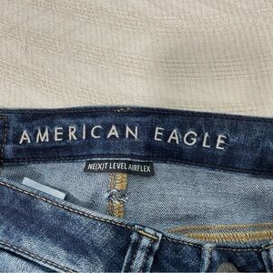 American Eagle Slim Straight Dark Wash Jeans Size 28 X 30. Dark wash with factory whiskering. Excellent pre-owned condition!