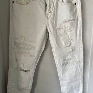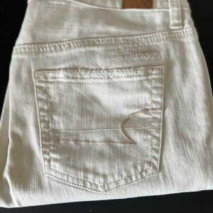 Almost new, cream colored American Eagle slouchy fit ankle cuff jean. Distressed design. Size 4 w/22" inseam cuffed.