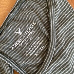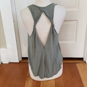 American Eagle twisted strap open back striped viscose/linen blend tank top size small