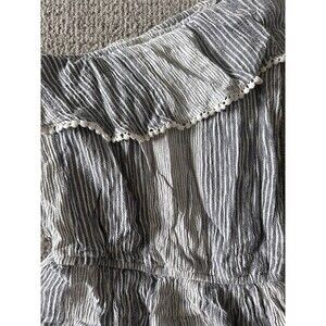 American Eagle Small One Shoulder Ruffle Dress Mini Striped Chambray Blue White