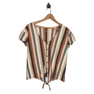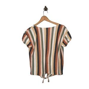 American Eagle Small S Orange Striped Linen Blend Tie Front Button Front Top