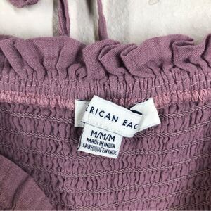 American Eagle Smocked Long Sleeve Purple Top Lace Boho Peasant Ruffle Medium