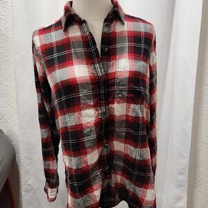 American Eagle Soft Boyfriend Fit Red and Black Plaid Flannel button down shirt