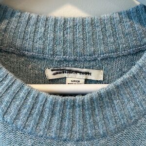 American Eagle Soft Knit Light Blue Sweater Small Exposed Seam Casual Fall Boxy