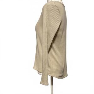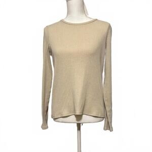 Elevate your casual wardrobe with this chic American Eagle long sleeve top. Crafted from a soft ribbed fabric, this top offers both comfort and style. Perfect for layering or wearing on its own, it features a classic crew neckline and elongated sleeves for a modern touch. The light beige hue makes it versatile for any wardrobe, ideal for pairing with your favorite jeans or leggings. Whether for a day out or a cozy night in, this top adds effortless style to your look. - Soft ribbed texture adds dimension - Classic crew neckline - Comfortable and breathable fabric - Ideal for layering or solo wear - Versatile light beige color for easy pairing