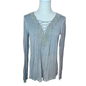American Eagle Soft & Sexy Lace Lattice V-Neck Long Sleeve Tee Medium