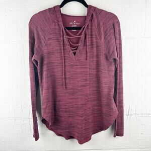 American Eagle Soft & Sexy Lace-Up Hooded Long Sleeve Top (M)