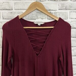 American Eagle Soft & Sexy Long Sleeve Burgundy Ribbed Swing Mini Dress Size M.