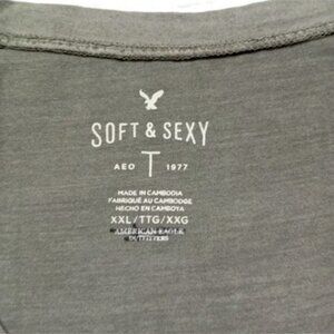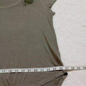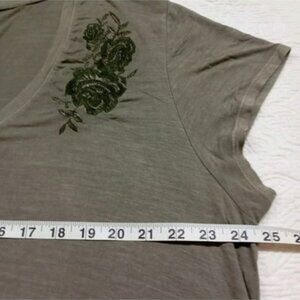 American Eagle Soft & Sexy Olive Green V-Neck Top XXL With Floral Embroidery