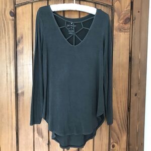 American Eagle Soft & Sexy Strappy Neck Gray Tunic Jegging Shirt Sz Small AE