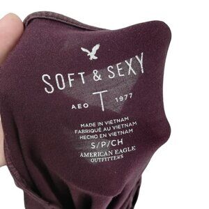 American Eagle Soft & Sexy T Long Sleeve Lattice Shirt Size S Curved Hem Stretch