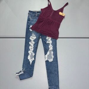 American Eagle Soft & Sexy Tank Top S & Distressed Jegging Jeans 6 Bundle