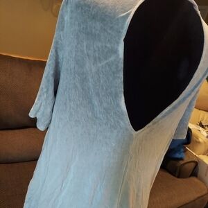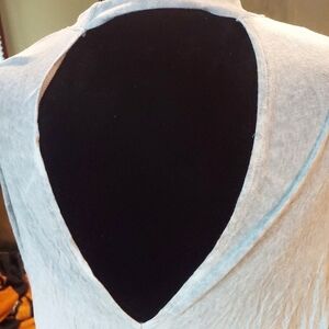 Condition is pre-owned but in very good condition. Very soft and comfortable. High neck, open v in back. No stains.