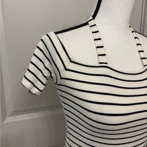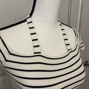 Cute striped off the shoulder and halter blouse cropped, ribbed, tight fit