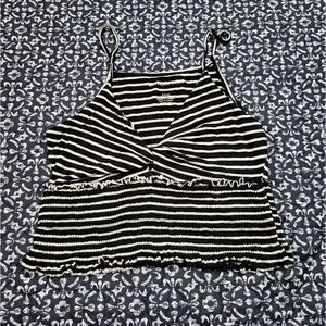 American Eagle Soft and Sexy Black & White Two Tone Striped Summer Chic Crop Top