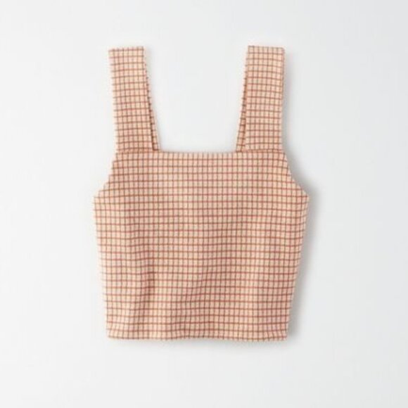 American Eagle Square Neck Cropped Tank Top - Brown Check - Size Medium