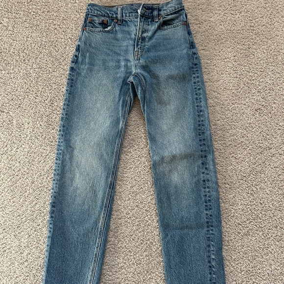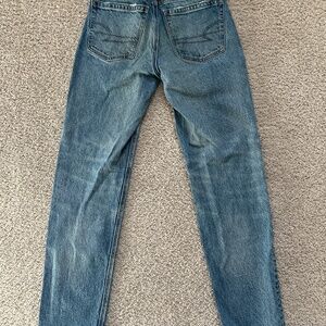 AE Medium Wash Straight Leg Jeans! Great for everyday wear! Pairs with everything, which makes it a great addition to your closet!
