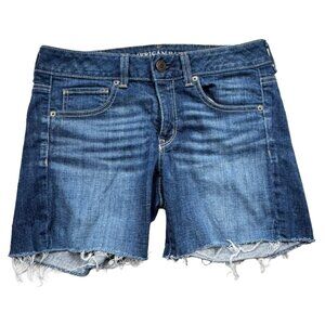 American Eagle Stretch Medium Wash Frayed Distressed Jean Short