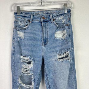 American Eagle Stretch Mom Jean Distressed Destroyed Size 00 EUC T2632