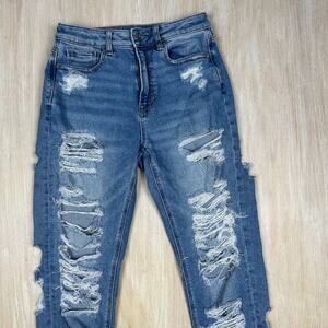 American Eagle Stretch Mom Jean Distressed Ripped Casual High Rise Denim Jeans 2