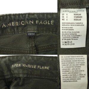 American Eagle Stretch Super Hi Rise Flare Corduroy Pants Womens 6 Green