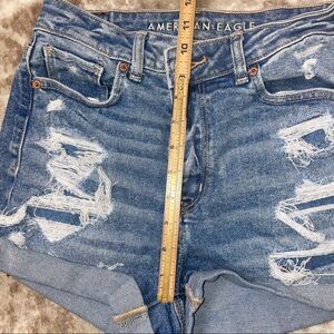 American Eagle Stretch high rise lots of distressing rolled hem cheeky shorts