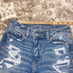 American Eagle Stretch high rise lots of distressing rolled hem cheeky SZ 4
