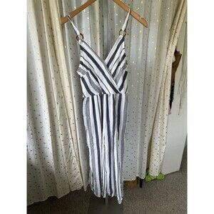 American Eagle Stripe Surplice Adjustable Ring Strap Smocked Back Jumpsuit M