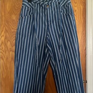 American Eagle Striped Blue Wide-Leg Pants Size 10