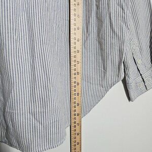 Tags: American Eagle, striped shirt, button-up shirt, casual wear, semi-formal, long sleeves, chest pocket, cotton blend, medium size, white and blue, men's shirt, classic style, versatile shirt, casual, professional, career, streetwear