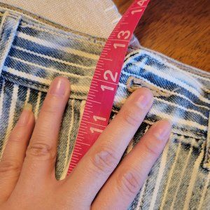 American Eagle shorts. Light, stretchy demin. Good condition. No holes that were made with wear. I bought them new, but they do not fit anymore and I have too many shorts right now. ☺ See photos for measurements. Fold is not sewn in, so adjustable inseam and length slightly.