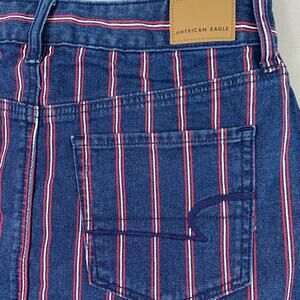American Eagle Striped Mini Denim Jeans Skirt Frayed Raw Hem Stretchy
