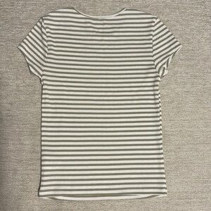 Casual striped ribbed tee. Colors are white and a pastel-like green. Very soft! Tags are off but never been worn. Pairs perfectly with any denim bottoms!