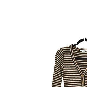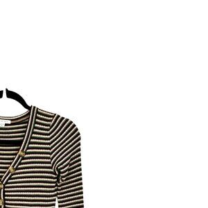 American Eagle Black Brown Green Multicolored Striped V-Neck Henley Style Front Button Placket Long Sleeve Soft Lightweight Ribbed Knit Dress Stretch Pullover Style Size XS - Excellent condition.