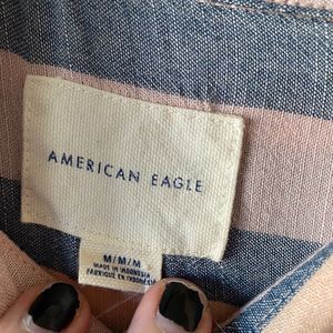 American Eagle Striped Short Sleeved Button Up Blouse | Size Medium