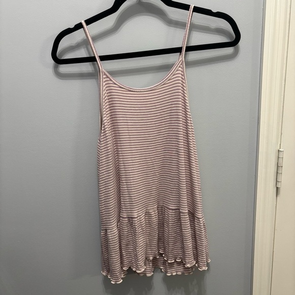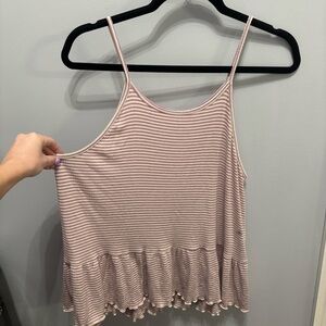 American Eagle, striped tank top, ruffle detail on bottom hem, pink and cream colored stripes, never worn. Size Large