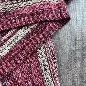 American Eagle Striped Waterfall Sweater Cardigan Size S Burgundy Pink Women’s