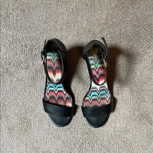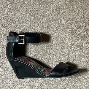 American Eagle Stylish Black Leather Sole Wedge Sandals. 7.5W