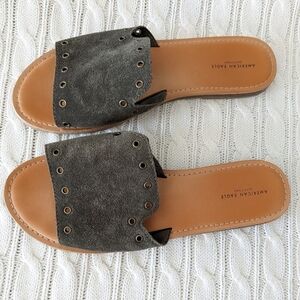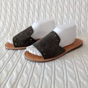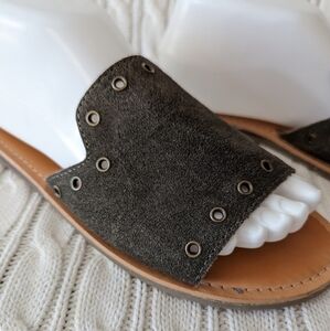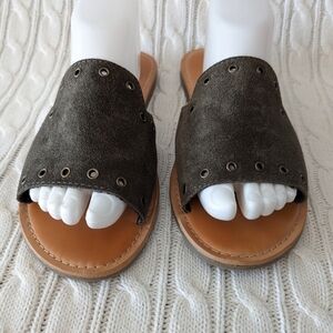 American Eagle Suede Leather Slides Slip On Sandals 10 Dark Olive Metal Grommets
