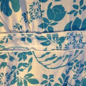Blue floral print and capped sleeves make this a perfect top for summer. Gathering right below the chest makes it flattering on any body type.